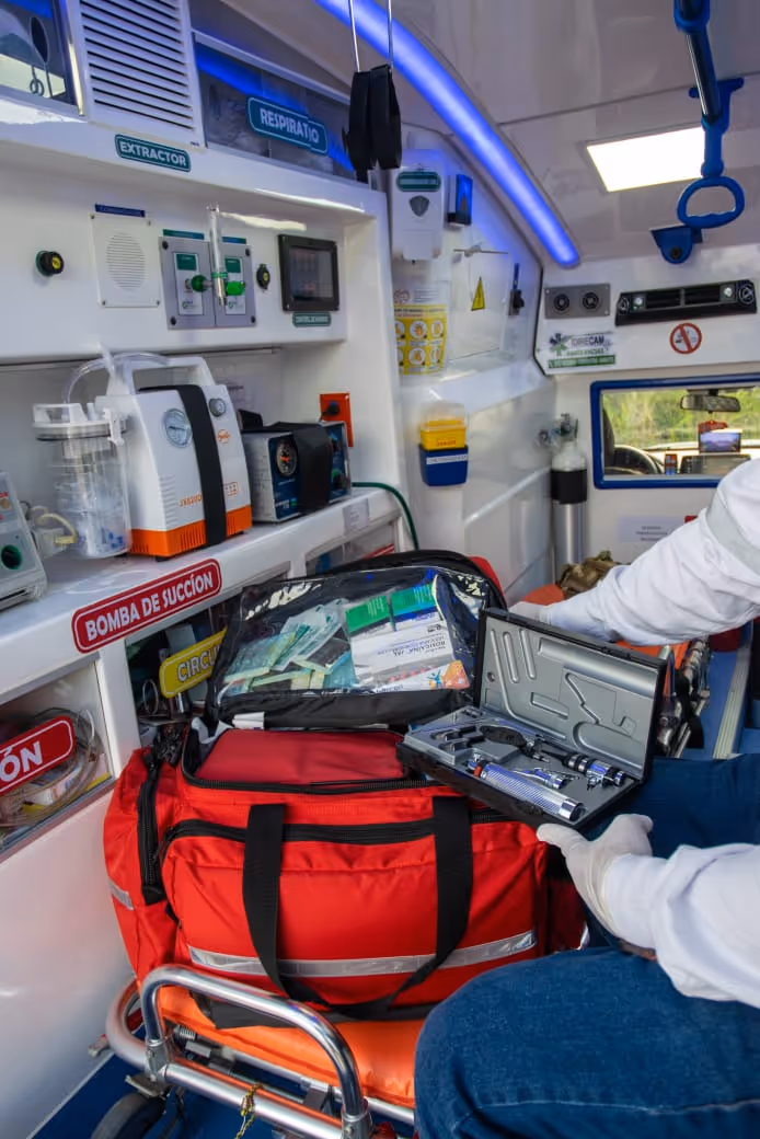 Todas las unidades están equipadas con monitores multiparámetro, desfibriladores, ventiladores mecánicos, aspiradores de secreciones, bombas de infusión, oxigenoterapia, material de inmovilización y trauma, medicamentos de emergencia y kits de primeros auxilios